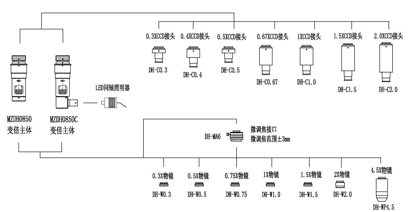 ●   可使用LED或光纖冷光源同軸照明,滿足觀察不同物體的需要